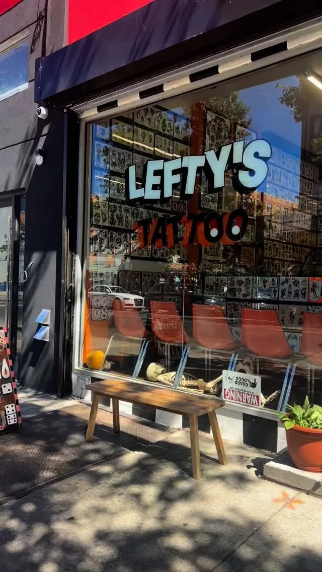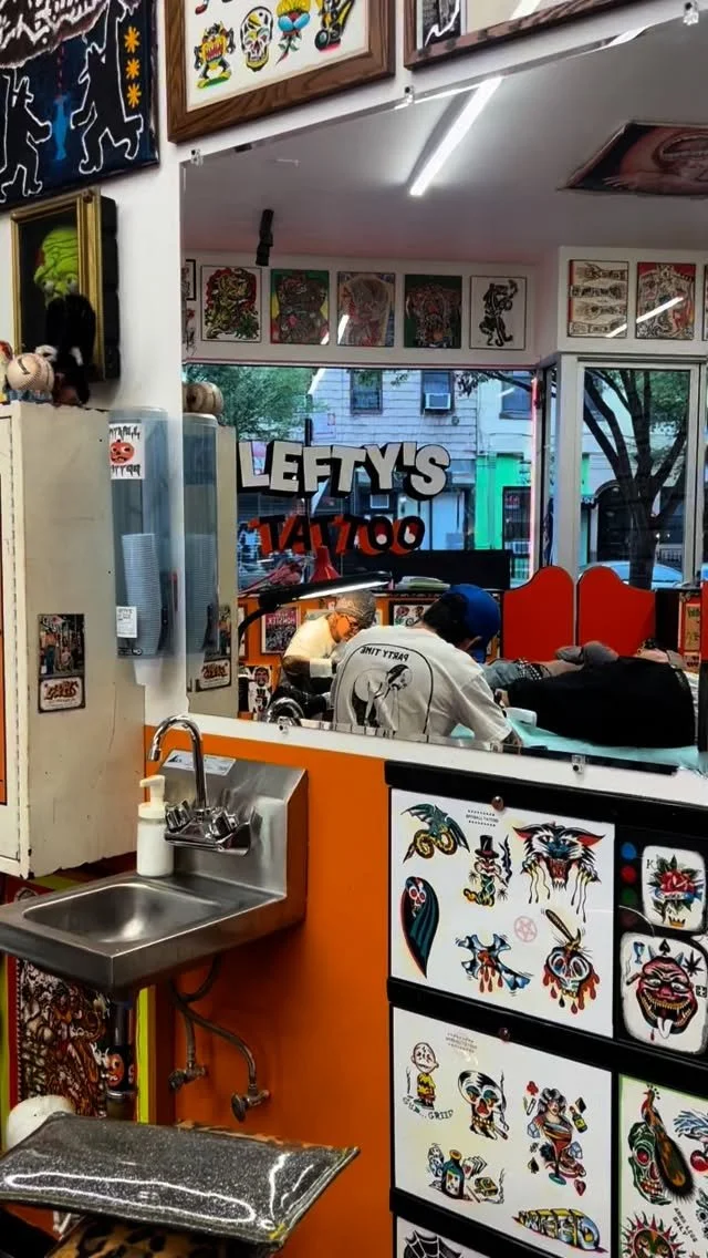 WELCOME TO LEFTYโS TATTOO PARLOR, BASED IN BROOKLYN NEW YORK. KNOWN AROUND THE WORLD, WE HAVE 1,000โS OF HAND PAINTED DESIGNS TO PERUSE. LARGE OR SMALL OUR SHOP HAS SOMETHING FOR EVERYONE.